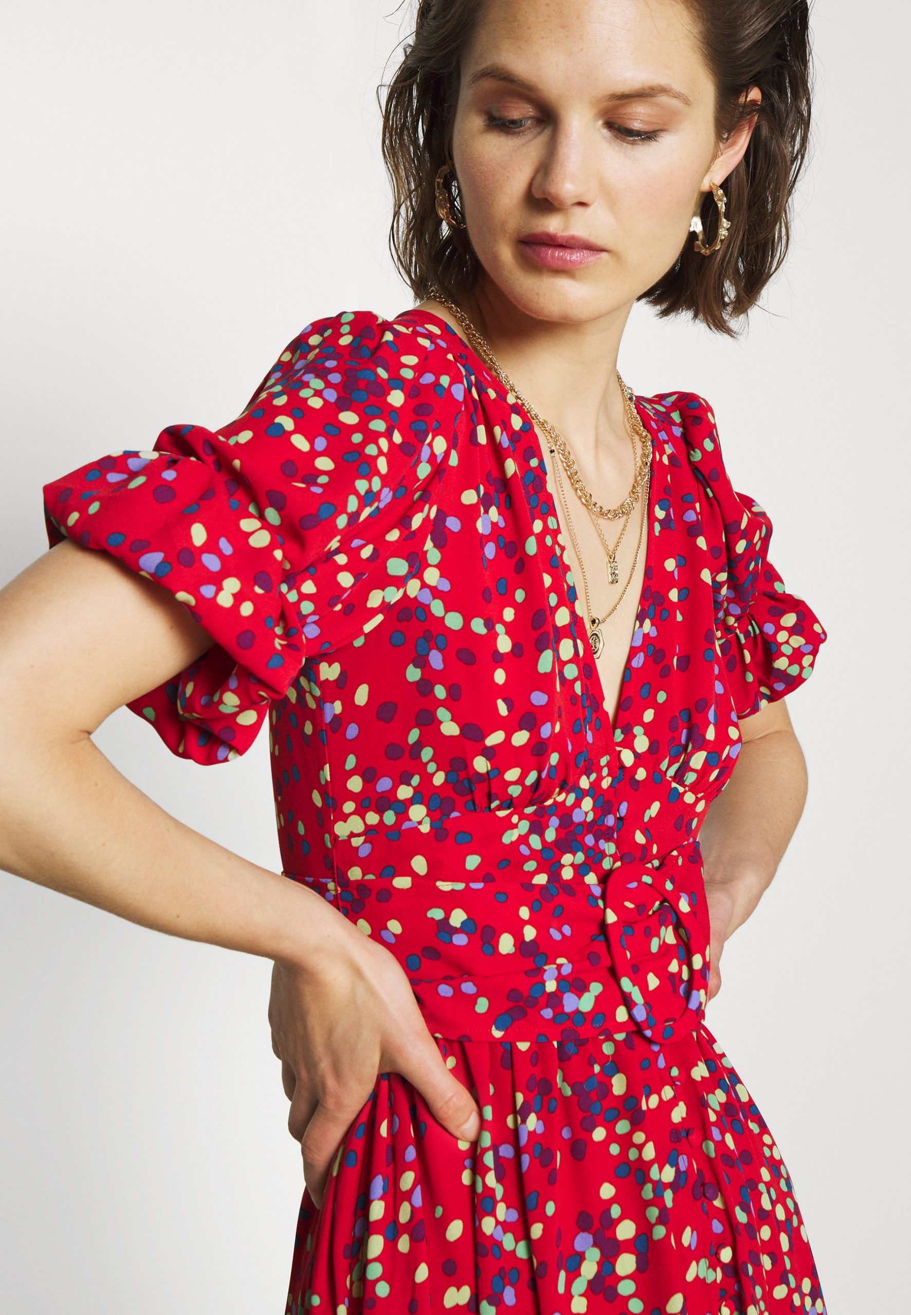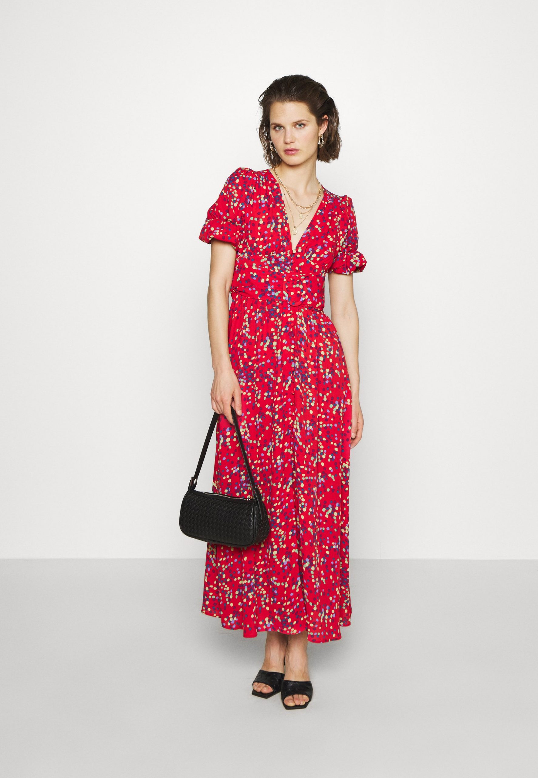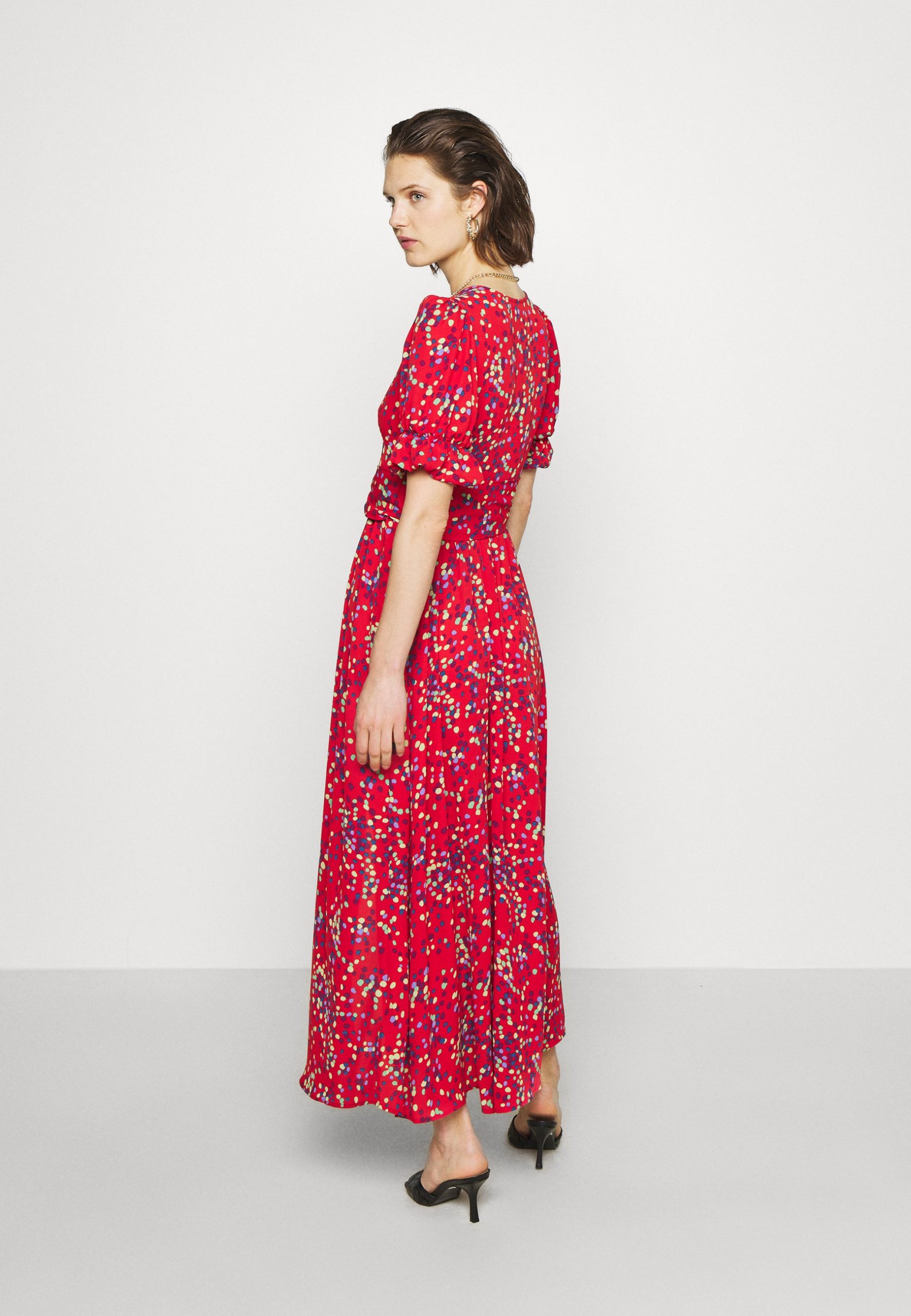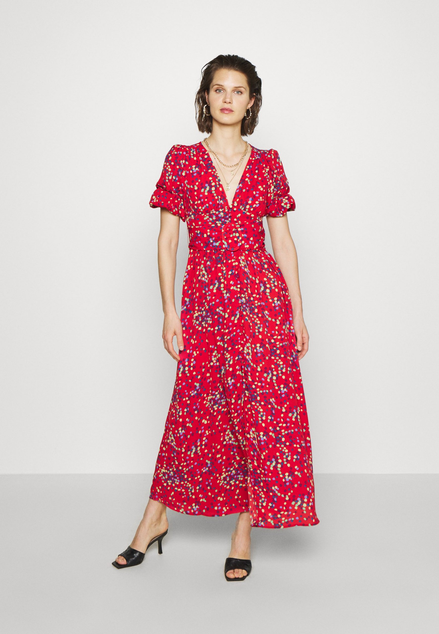 Сукня максі з поясом в дрібний горох