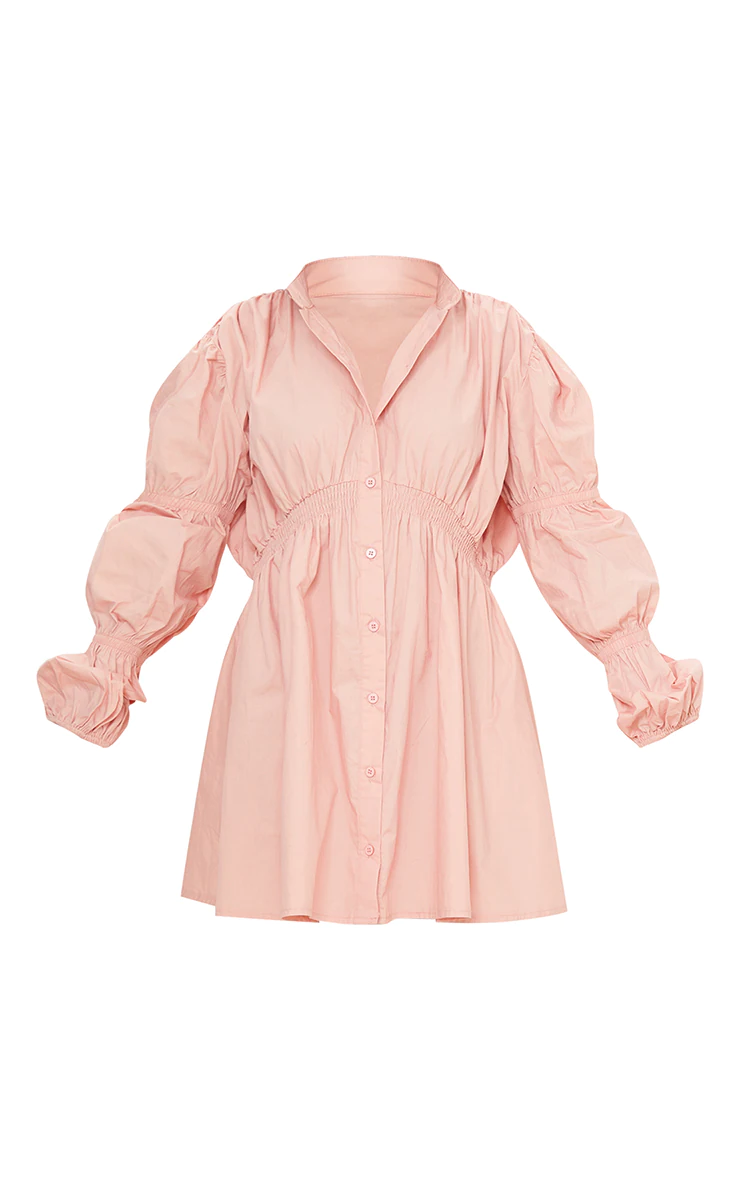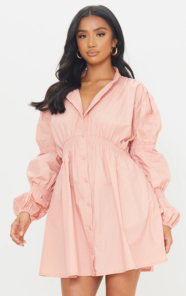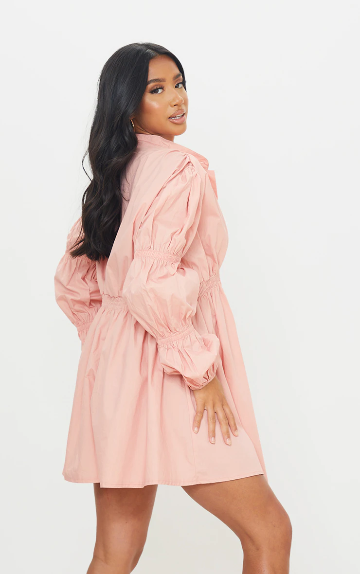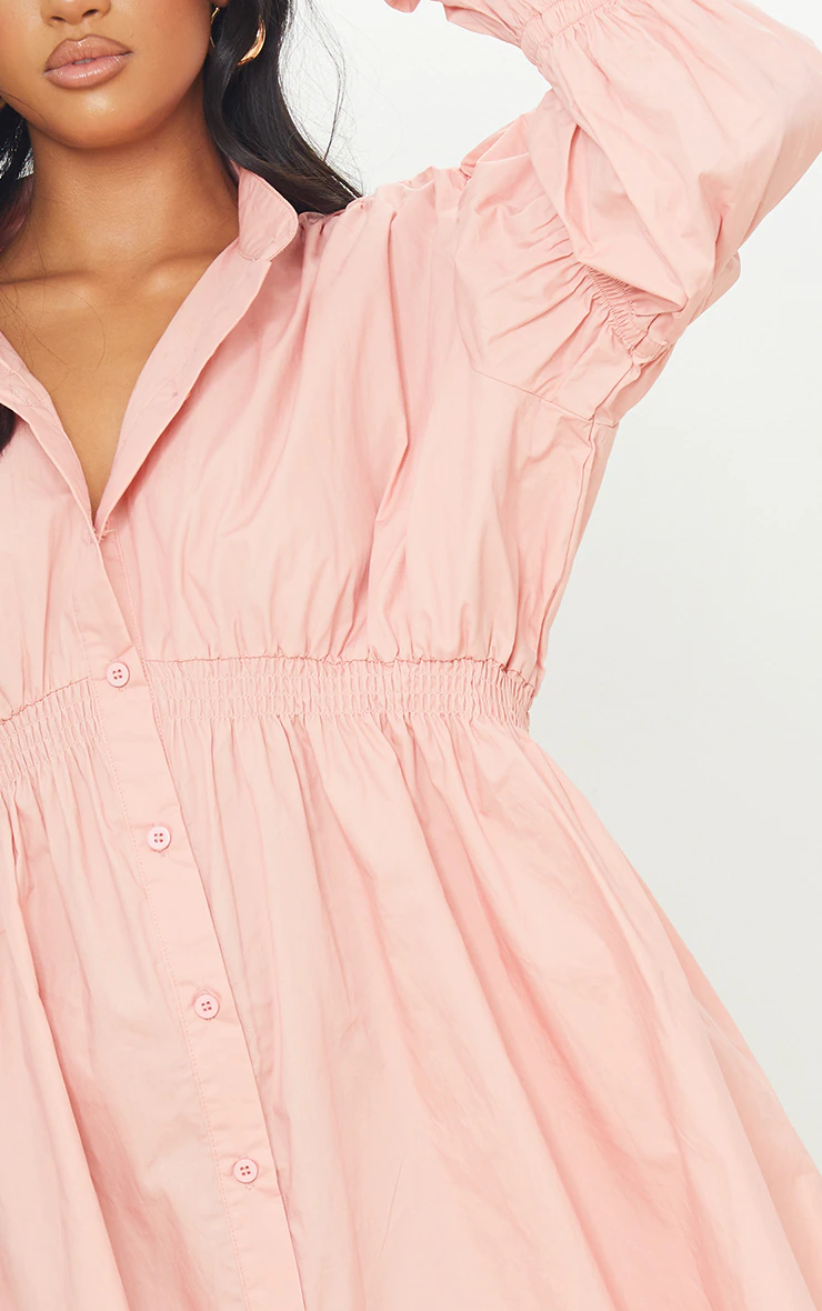 Маленька рожева бавовняна сукня-сорочка зі складками