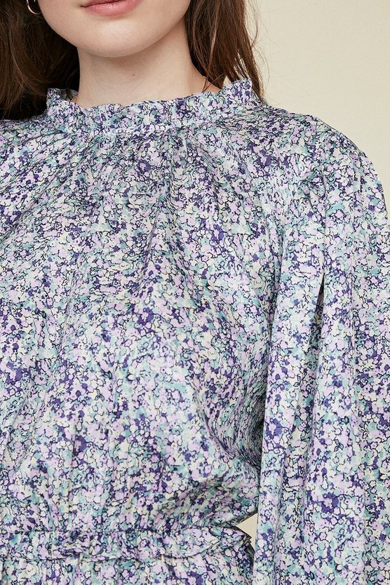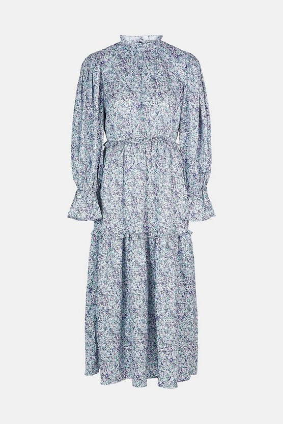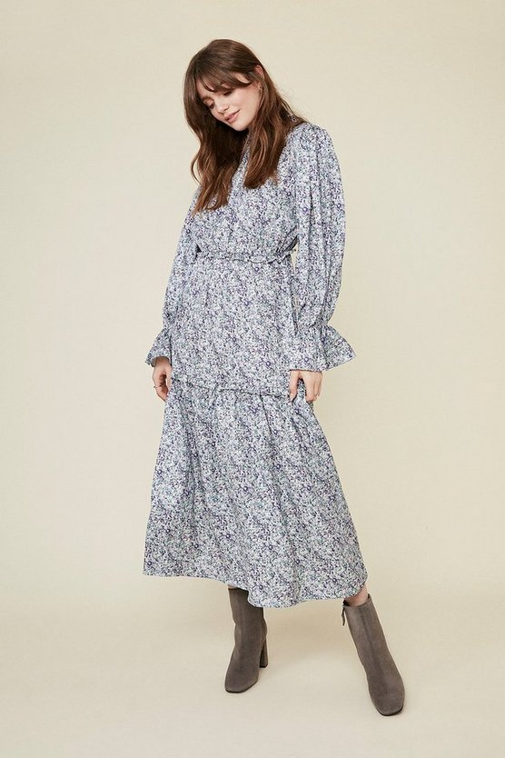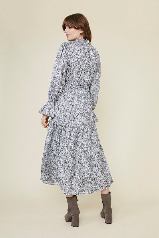 Довга квітчаста сукня з оборками